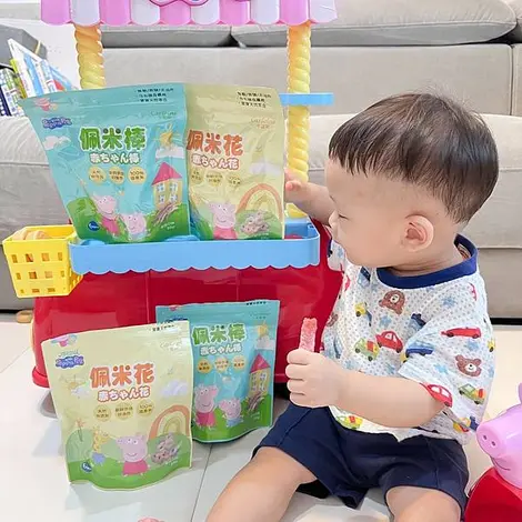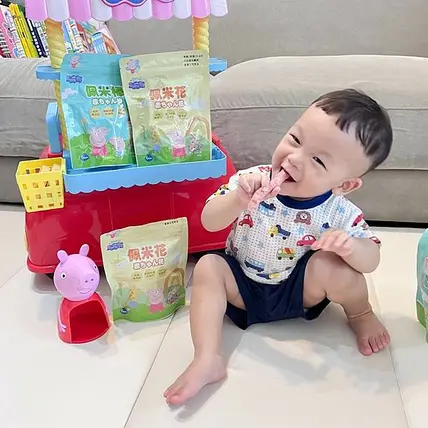 獨家限定佩佩豬包裝,三種口味一次滿足( 糙米、黑糙米、紅麴米 ),適合滿 6 個月以上,健康的佩米花、佩米棒訓練寶寶抓握和咀嚼能力。